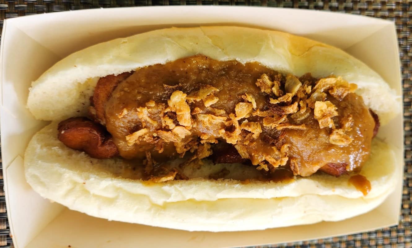 Een lekker Surinaams broodje met Thaise sate gemaakt van kipfiles en rijkelijk overgoten met de smakelijke haise satesaus.