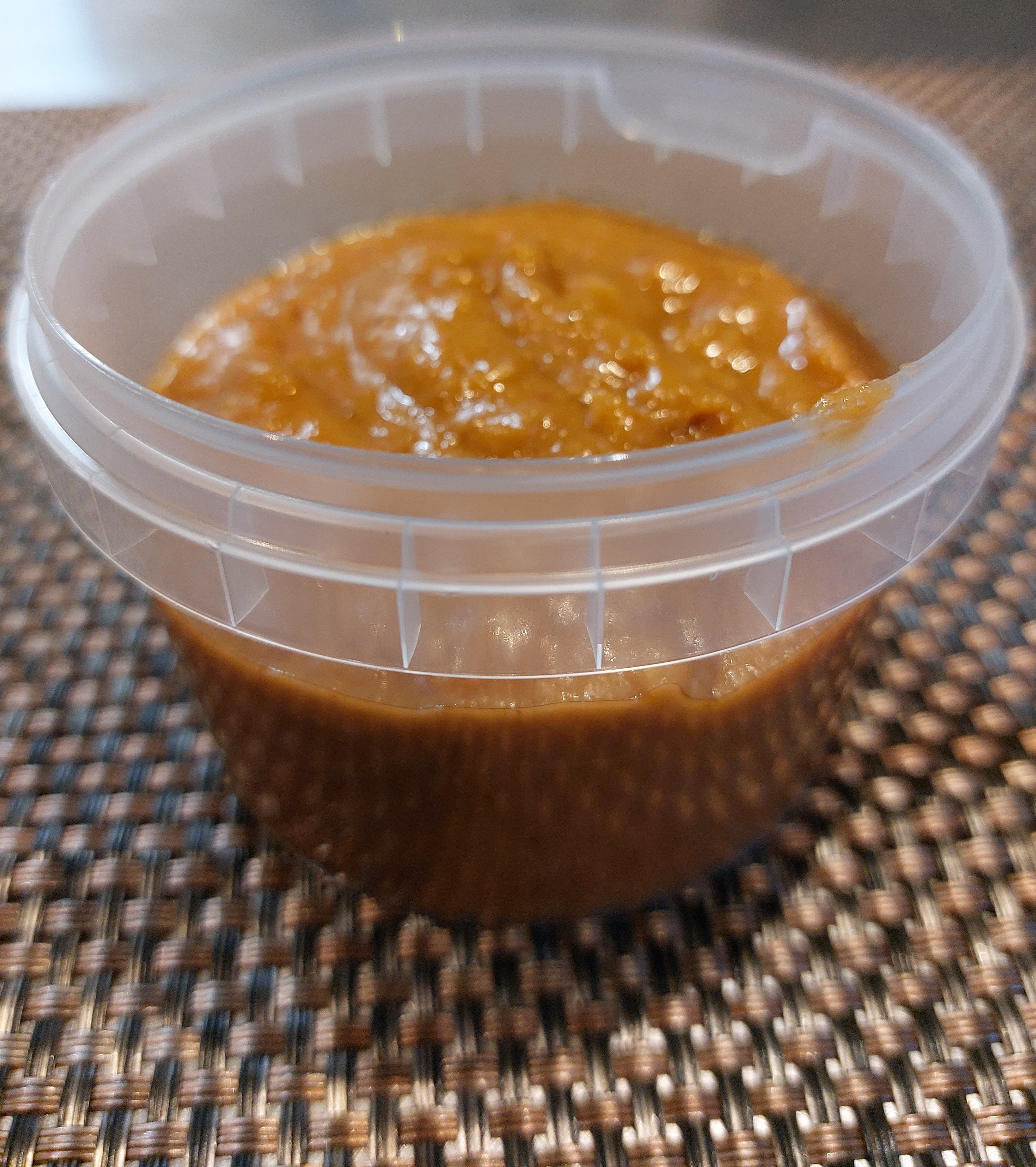 Een bakje met minimaal 200 gr. van onze vers gemaakte satesaus.